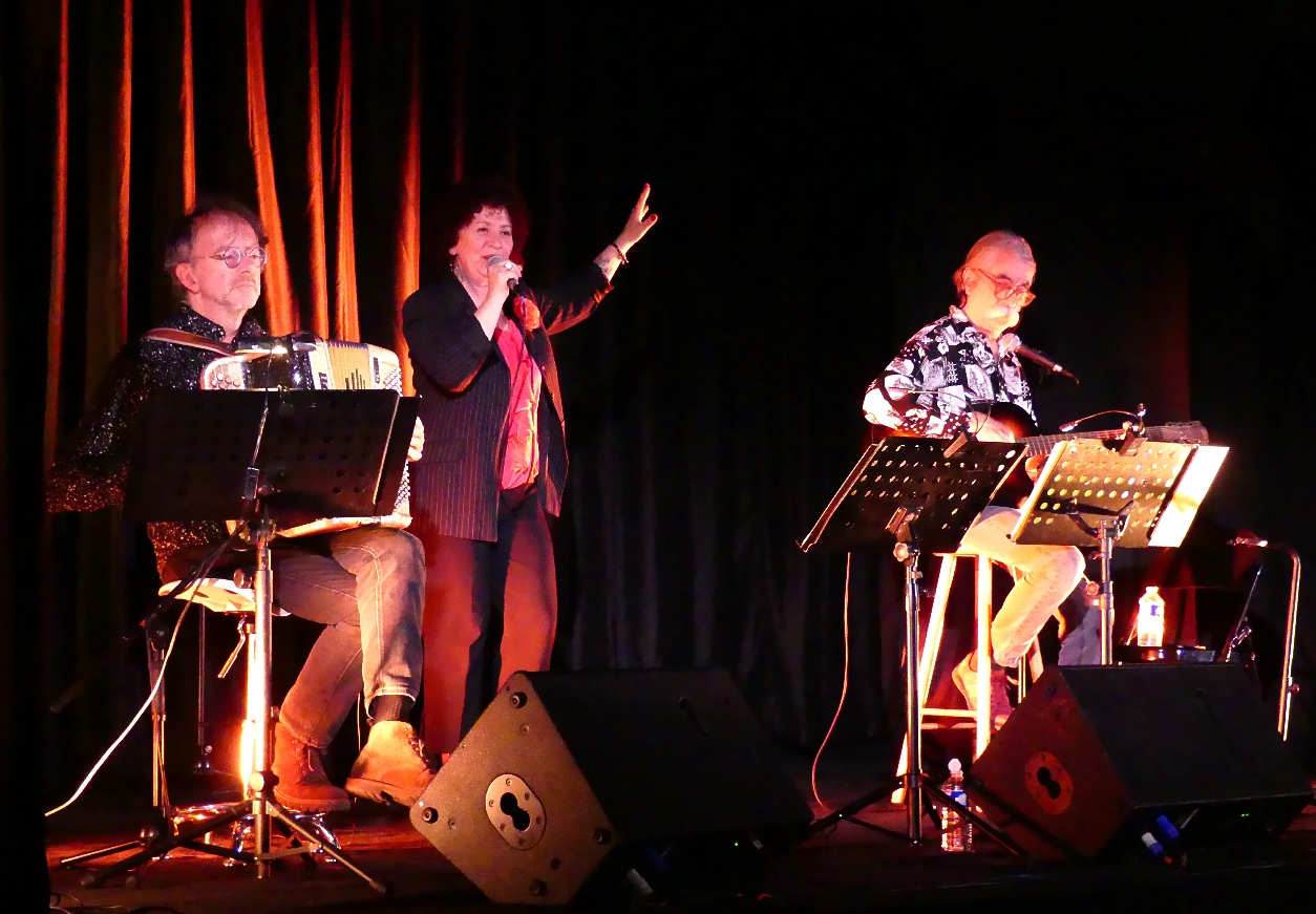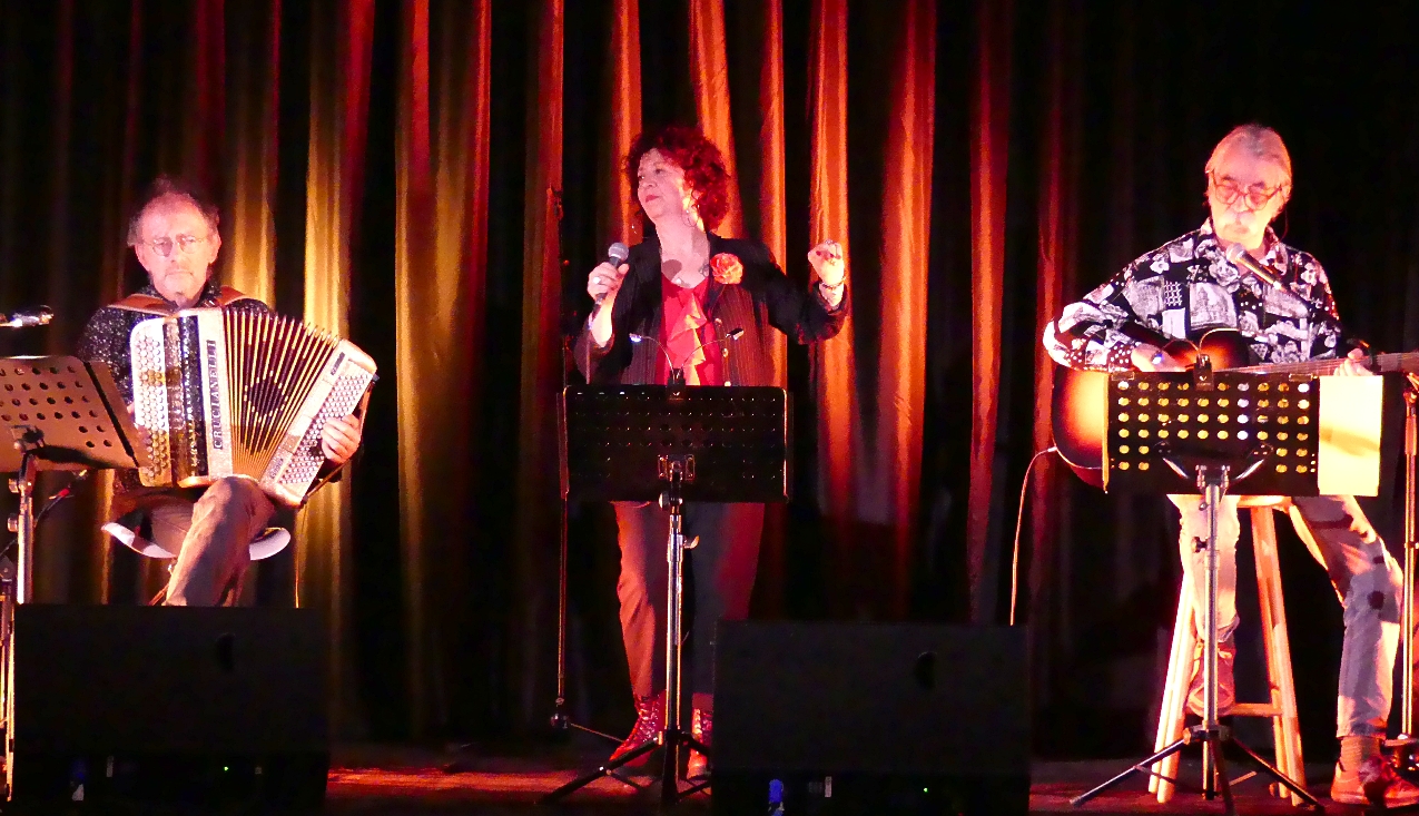 Cathy FERNANDEZ (conteuse, chanteuse) accompagnée par Claude DELRIEU (accordéon) et Michel VIVOUX (chant, guitare)